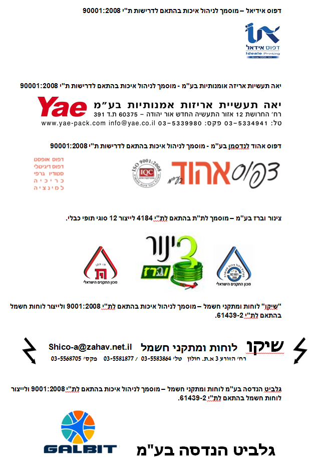לקוחות מוסמכי תו תקן